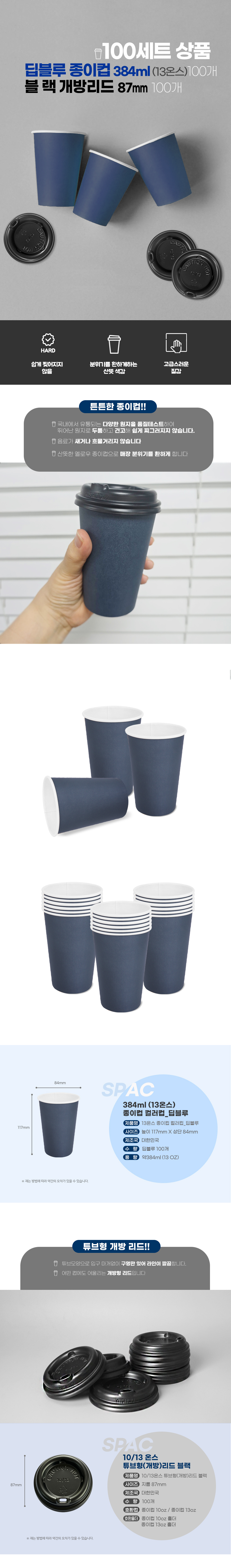 (100세트_컬러종이컵+뚜껑세트)380ml(13온스) 딥블루+튜브형리드 이미지 확대 보기